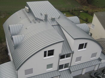 Klempner können auch metallische Dachabdeckungen verwenden, wie z. B. Kupfer-, Zink- oder Aluminiumbleche , um das Dach optisch ansprechend und langlebig zu gestalten. - Verschiedene Entwässerungssysteme